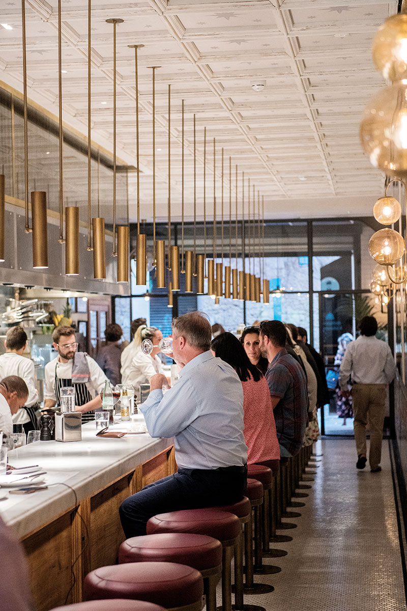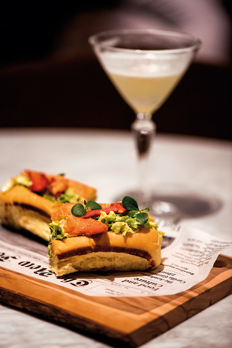 Gröna fingrar är Fabiola Gastronomic Gardens grej. Inramad av tapeter med gröna blad och ananas i guldfärg så uppmanas gästen i denna urbana trädgård att dela på maten. Men först inleds kvällen med en cocktail, och här här skakar man fram dem i halv storlek.