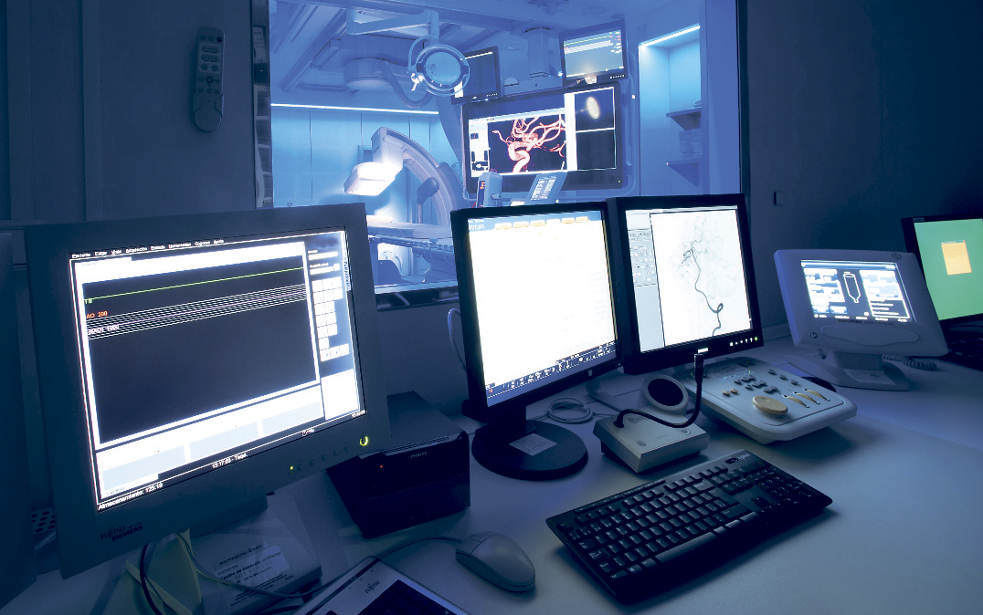 Tidigare inbegrep en behandling komplicerad öppen hjärtkirurgi. Men tack vare nya behandlingstekniker där man använder sig av radiologistyrda katetrar, kan våra specialister återställa normal blodcirkulation med endast ett minimalt snitt, och därefter föra in en biologisk ventil monterad på metallnät, alternativt en stent (expanderbar slang) i blodkärlet. Vid Hospital Quironsalud Palmaplanas kan vi nu behandla strokepatienter med hjälp av en teknik som påminner om interventionsradiologi och mikrokateter. Våra specialister kan även lösa upp blodproppar som hindrar blodflödet till hjärnan och återställa neurologiska funktioner, förutsatt att behandlingen utförs inom fyra timmar efter de första symptomen uppstår.