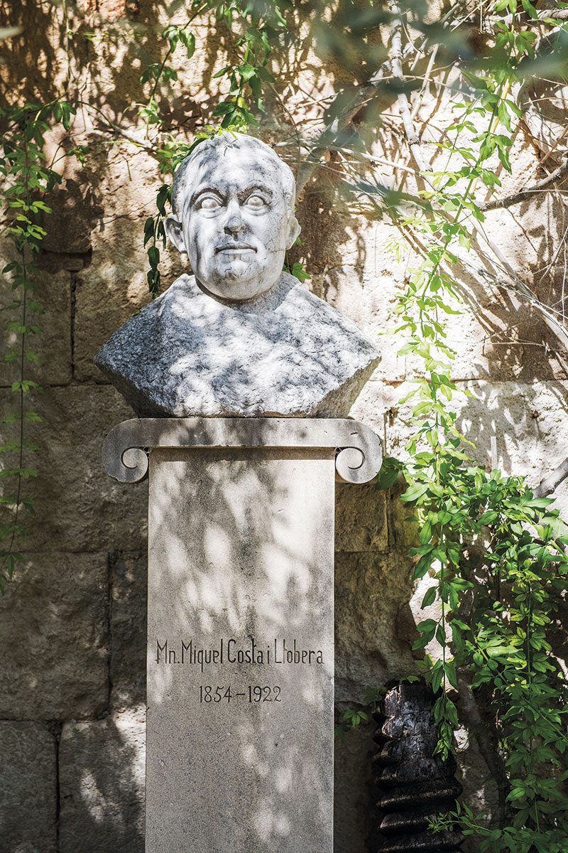 Efter en vandring genom en relativt tät skog av stenek, där vi passerar ruinerna av några runda stenlagda sitjor, där kolbrännare ända fram till 50-talet brände kol på träden, når vi stenarna som markerar riktningen mot toppen. Det är efter den här punkten det börjar bli brant. Leden slingrar sig upp genom den allt glesare skogen och snart börjar vi skymta omgivningen genom grenarna. En kalkstensgrå bergsvägg med enstaka gröna trädkronor reser sig mot bergstopparna på Puig d’en Galileu, och bakom dem ser vi havet mot Pollenca.