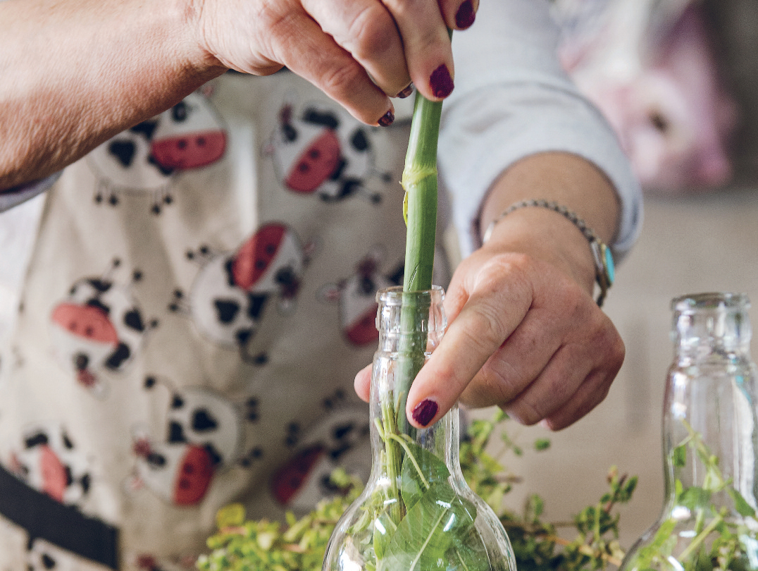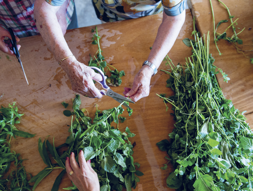 För att få rätt kvävehalt i jorden planterar han bland annat bönor, men här växer också olivträd och blommor, insekter och bin surrar. Druvorna sprutas bara med svavel för att motverka svamp.